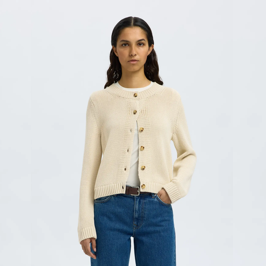 Selected Cille Knit O-Neck Cardigan, Irish Cream Melange