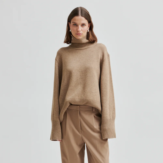Second Female Alpha Knit T-Neck, Camel Melange