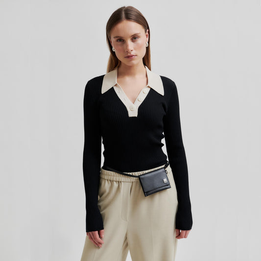 Second Female Josephine Knit Polo, Black