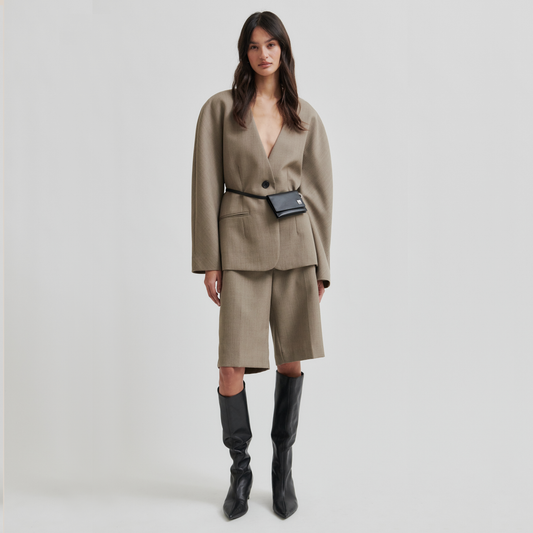 Second Female Levelup Tailored Shorts, Mid Brown Melange