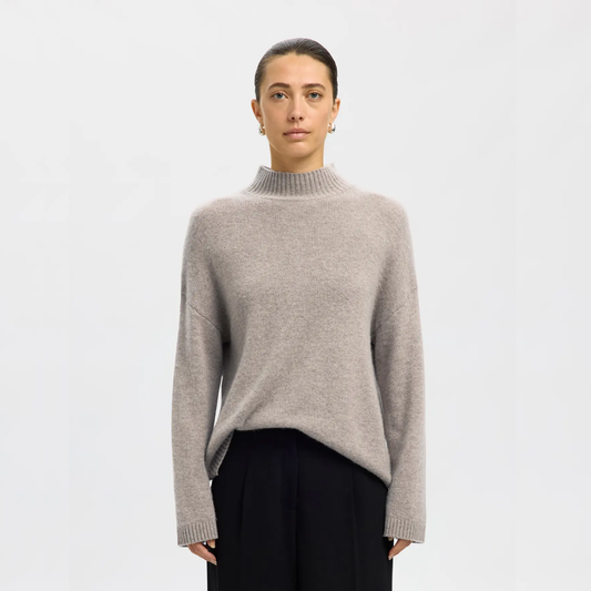 Selected Ava Knit O-Neck, Irish Cream Melange
