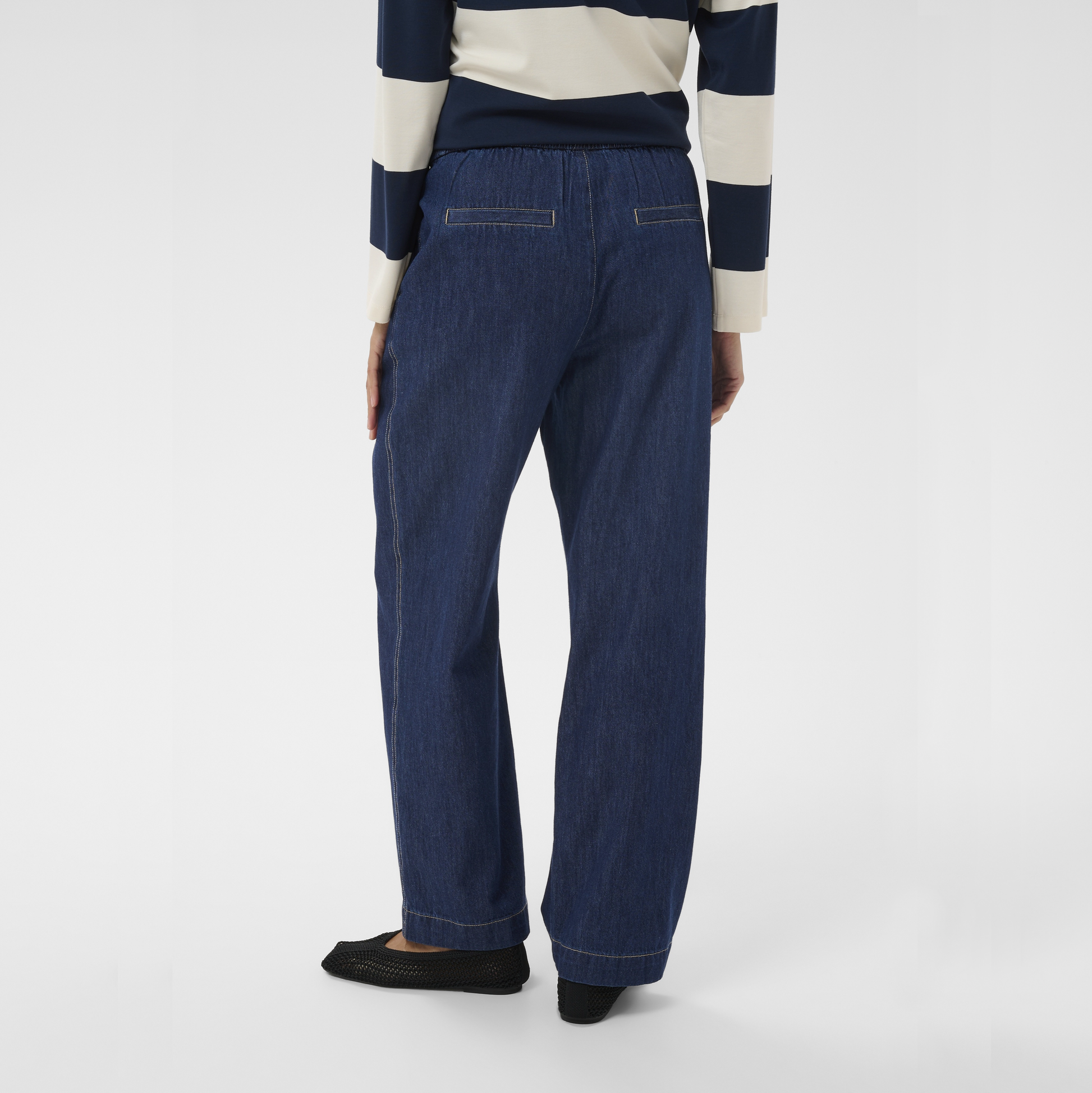Disse wide leg jeans fra Part Two har en elastisk talje og et lige, afslappet snit, der giver en behagelig pasform. Den fulde benlængde og det rene udtryk skaber et tidløst look, mens pull-on-designet gør dem nemme at tage på og perfekte til hverdagsbrug. Et par komfortable jeans med et enkelt og stilrent udtryk.